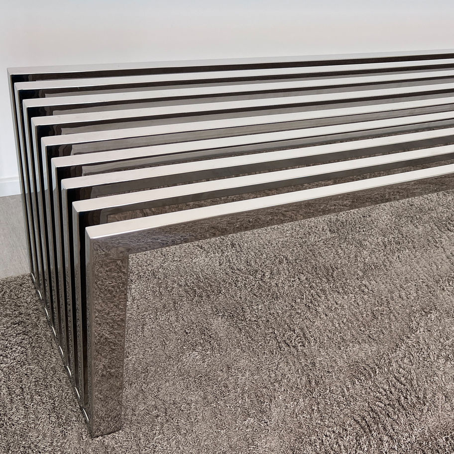 Avec son design architectural et son motif rectiligne, le banc Carlisle brillant et élégant complètera à merveille un intérieur moderne ou contemporain.