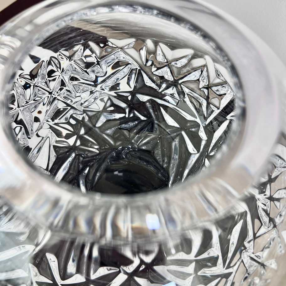 Son décor facetté, délicatement taillé dans le verre clair, capte la lumière et crée un jeu de reflets scintillants qui transforme chaque intérieur en un espace raffiné.